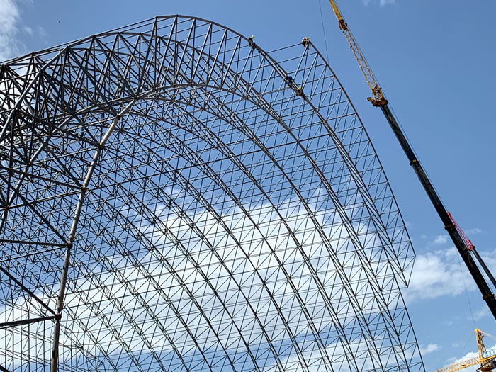 (2)网架加工前应对现场尺寸进行复测,确认无误后方可进行加工、安装;网架制作、运输、安装应遵守《空间网格结构技术规程》JGJ7-2010、《钢网架德惠螺栓球节点》JG/T 10-2009、《钢网架德惠螺栓球节点用高强度螺栓》 GB/T 16939-2016、《德惠钢结构德惠工程德惠施工规范》 GB50755-2012、《德惠钢结构德惠工程德惠施工质量验收标准》 GB50205-2020。